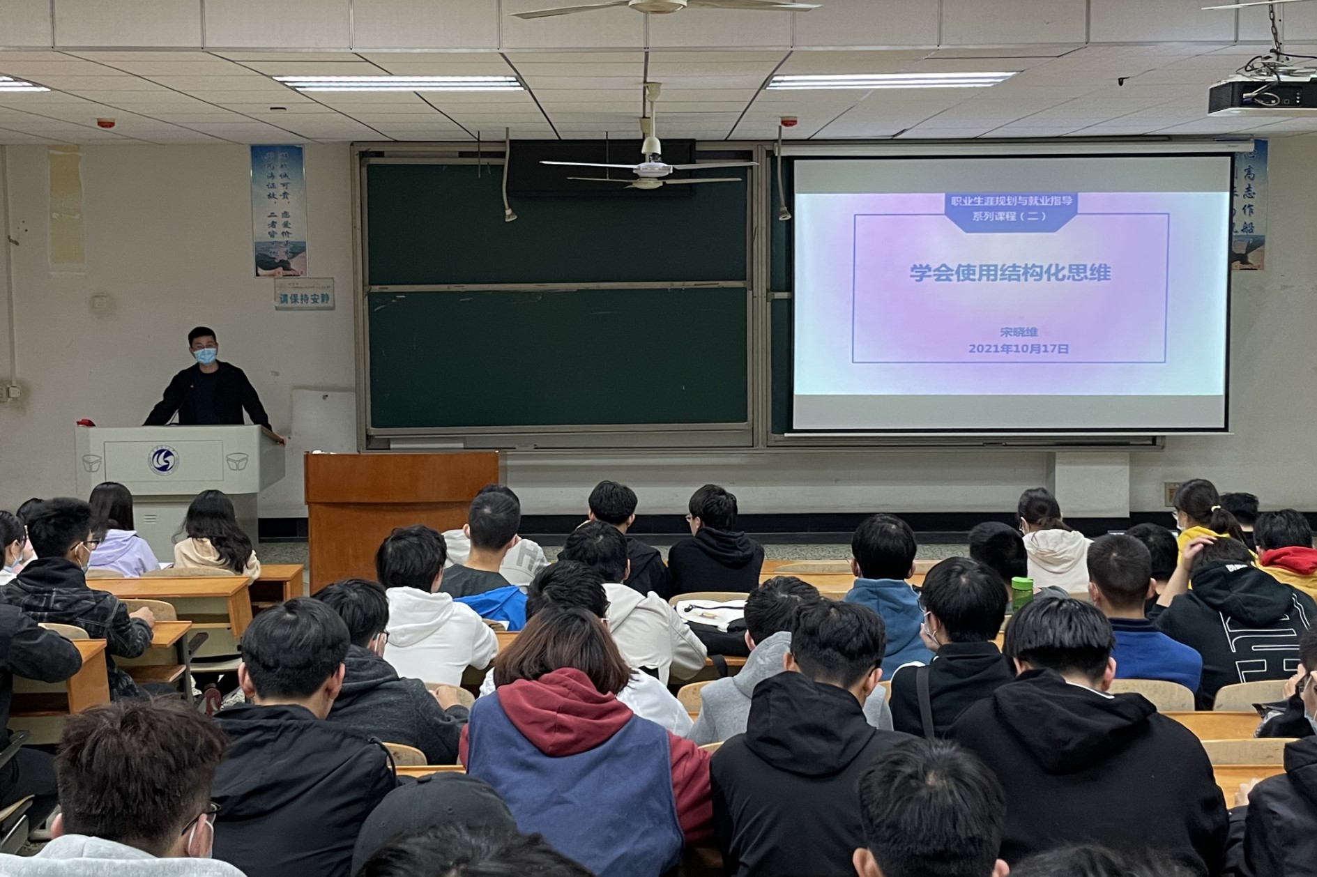 ????10月17日晚,船海能動學院2019級能源與動力工程專業利用年級周課主陣地,在航海樓315教室開展職業生涯規劃與就業指導第二講——學會使用結構化思維。本次年級周課由輔導員宋曉維老師主講,2019級能源與動力工程專業全體同學都參與了此次周課。