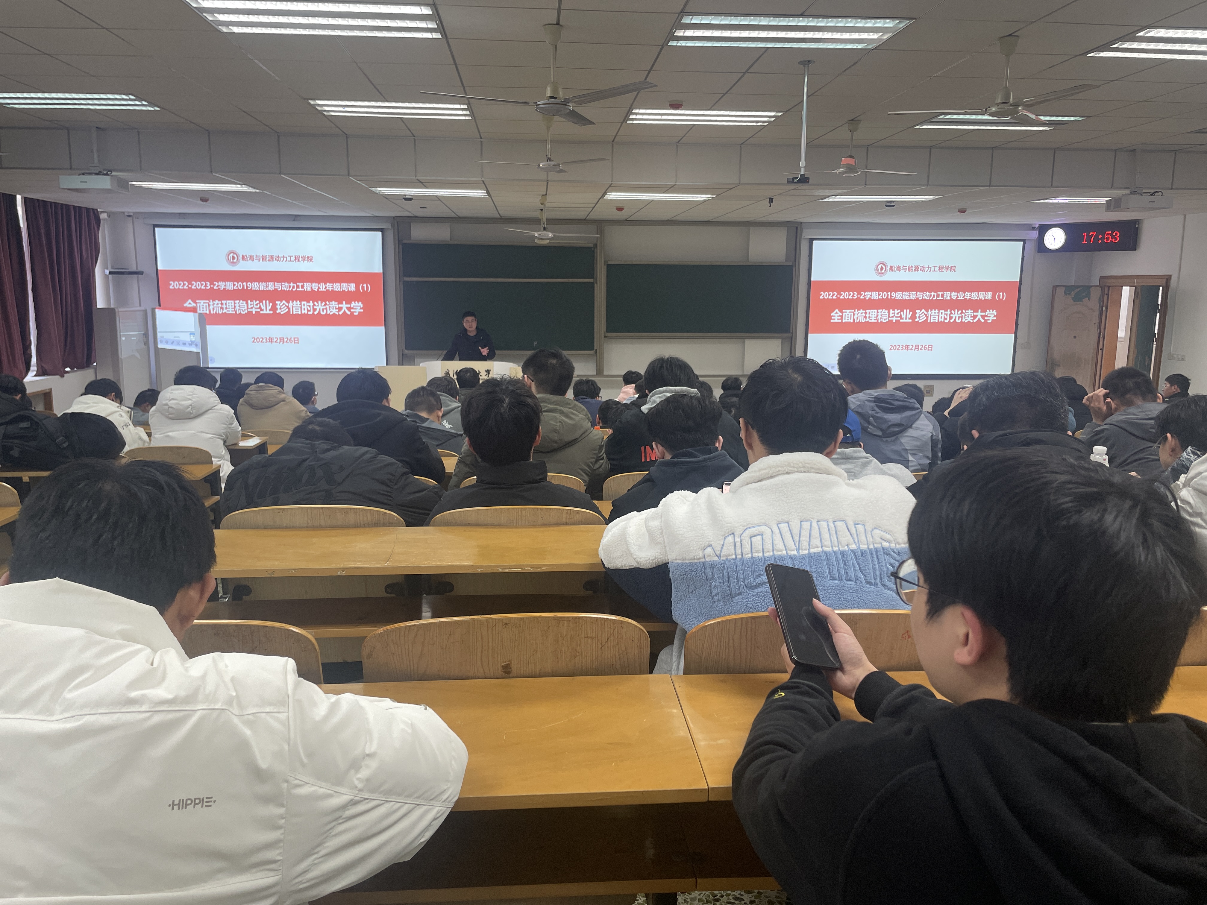 2月26日晚,船海能動學院2019級能源與動力工程專業輔導員宋曉維老師在航海樓401教室以“全面梳理穩畢業珍惜時光讀大學”為主題為全體2019級能源與動力工程專業的學生講授了開學第一課。