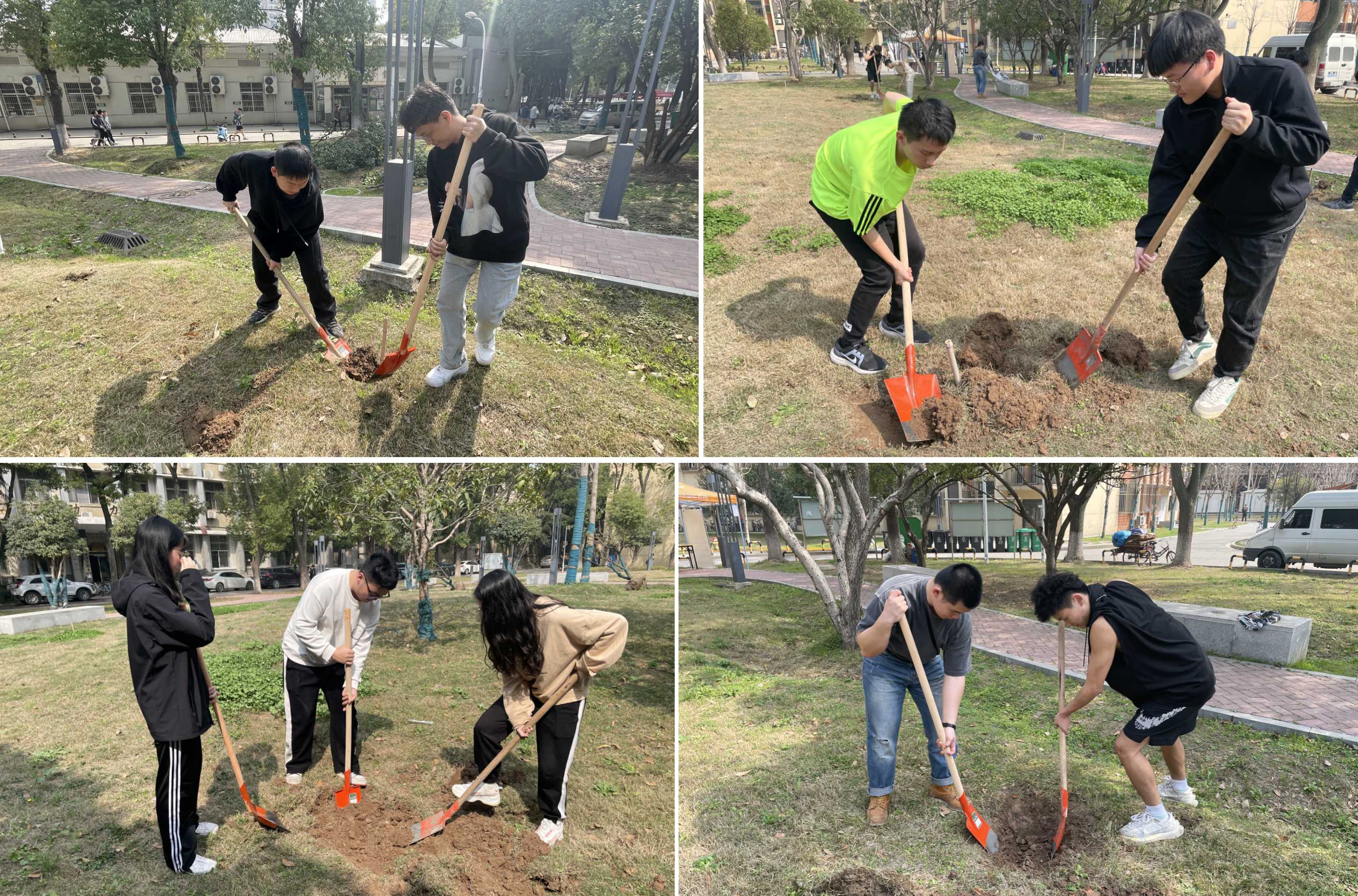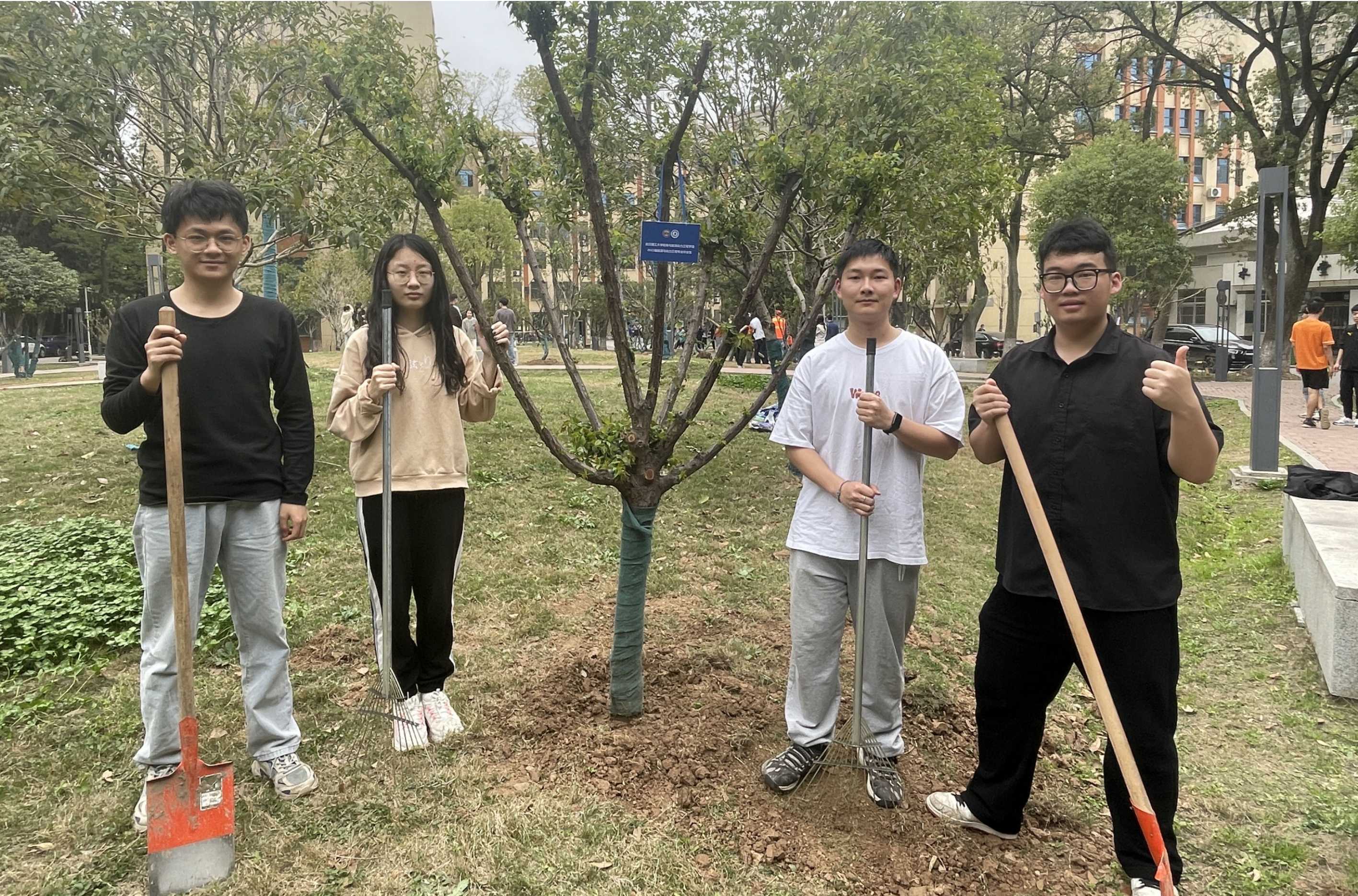 3月9日下午,學院2023屆畢業生代表12人,積極投身到植樹前的準備工作中。刨土、挖坑、搬運樹苗,大家干得熱火朝天。